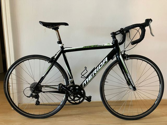 Detalles del productoBicicleta de carretera Merida en talla L. Cuenta con horquilla de carbono. Platillo de freno y ruedas nuevas.