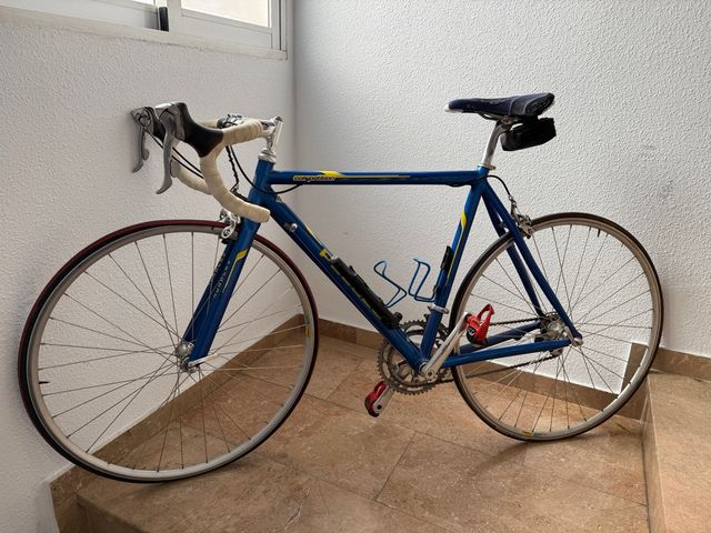 Bicicleta de carretera Peugeot en color azul. - Cuadro de competición. - Ruedas de radios. - Manillar de carretera.