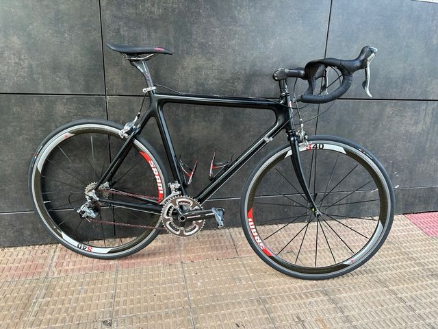 Detalles del productoComo nueva. Talla 56. Ruedas de perfil Sram de carbono para cubierta con zona de frenado en alumnio. Frenos dura ace. cambio ultrgra 10v. Bielas compac de carbono. Buje cerámico. Manillar plano de carbono. Sillin San Marco Aspide. Tija Look.