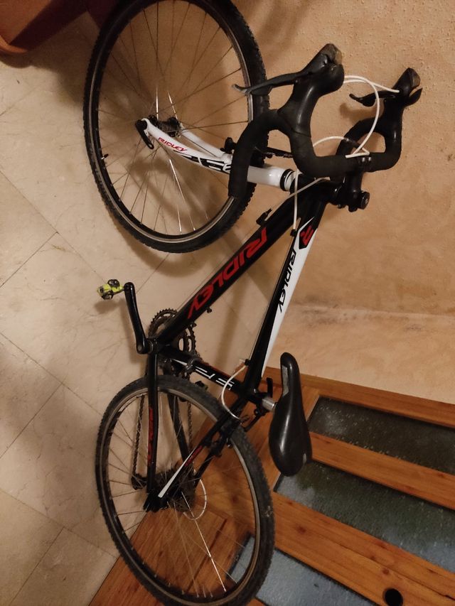 Bicicleta de ciclocross y carretera de la marca Ridley. Ruedas de 24" talla xs - Cuadro de color negro y blanco. - Manillar de carretera. - Sillín negro.
