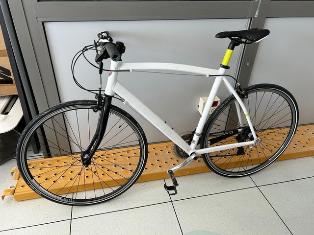 Detalles del productoBicicleta blanca versátil, apta para ciudad y carretera. Diseño moderno y funcional.