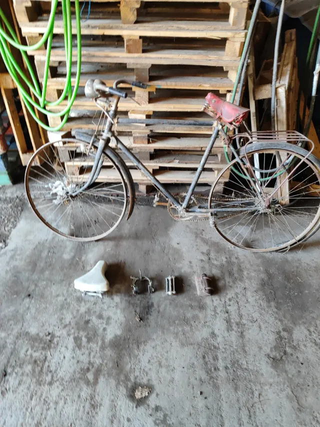 Detalles del productoBicicleta antigua de estilo clásico, ideal para coleccionistas o proyectos de restauración.