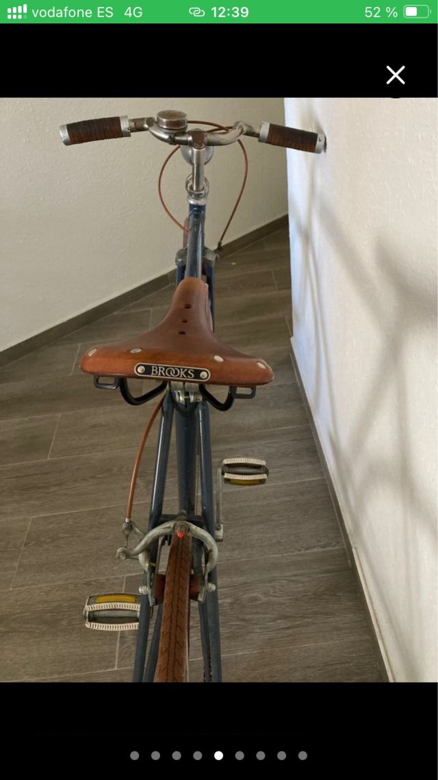 Bicicleta clásica con sillín Brooks. - Sillín de cuero Brooks. - Manillar con puños de cuero. - Neumáticos de color marrón.