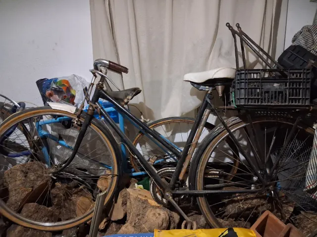 Bicicleta clásica con diseño de varillas, ideal para coleccionistas o para un proyecto de restauración. - Cuadro de varillas. - Sillín blanco.