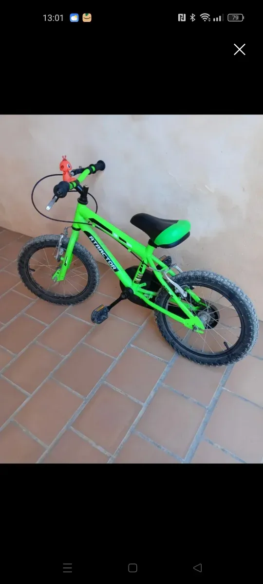 Detalles del productoBicicleta infantil de color verde brillante, ideal para los más pequeños.