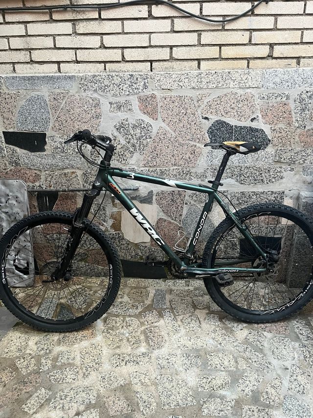Bicicleta de montaña Conor WRC en color verde. - Cuadro de aluminio. - Ruedas de 26 pulgadas. - Frenos de disco. - Suspensión delantera.