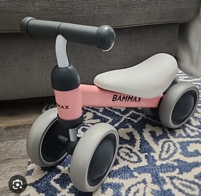 Bicicleta correpasillos BAMMAX de color rosa, ideal para los más pequeños. - Diseño de tres ruedas. - Manillar gris. - Asiento blanco.