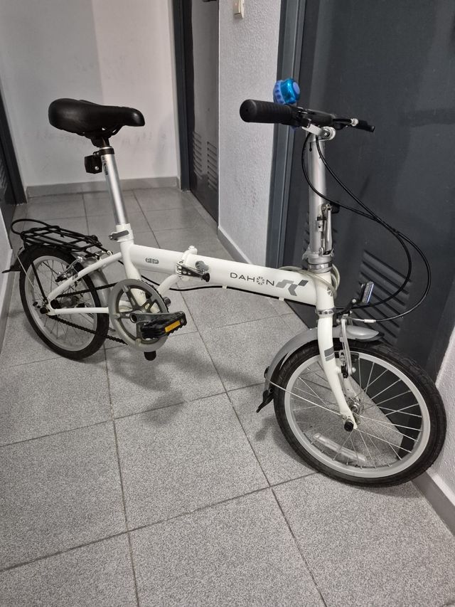 Detalles del productoBicicleta plegable Dahon Pop en buen estado. Es blanca, tienes que hacer una puesta a punto de cadena y tiene las ruedas desinfladas por falta de uso.