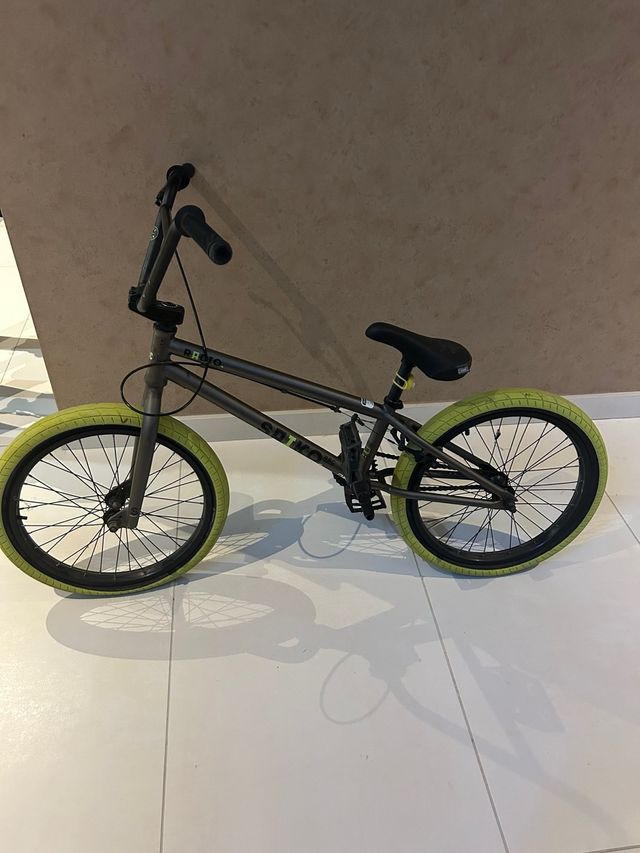 Detalles del productoBicicleta BMX de la marca RBC, con un llamativo color verde y neumáticos a juego. Ideal para quienes buscan una bicicleta nueva para practicar BMX.