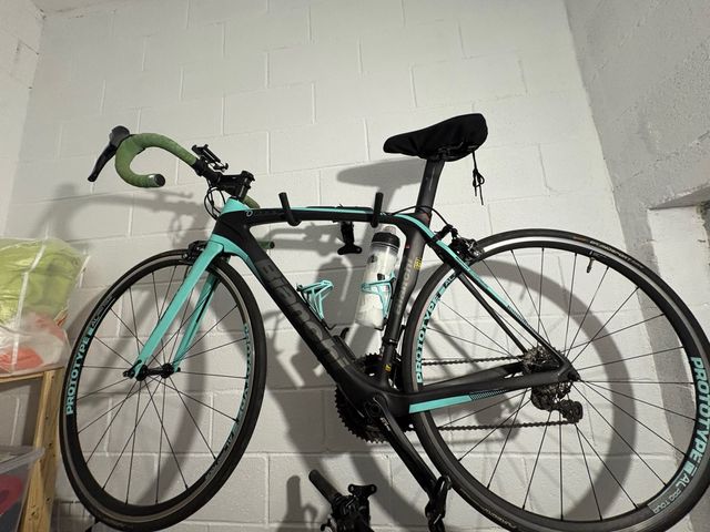 Detalles del productoBicicleta de carretera Bianchi con cuadro de carbono.