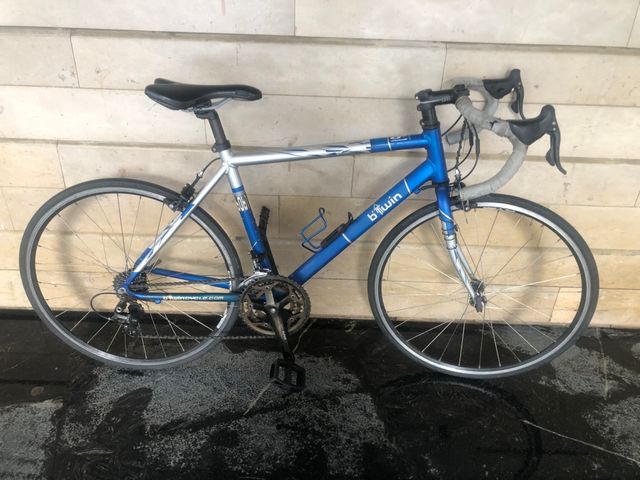 Detalles del productoBicicleta de carretera con un diseño deportivo en azul y plateado. Ideal para paseos y entrenamientos. Cambios incorporaDOS EN EL MANILLAR. Buen estado.Cuadro de aluminio.Talla M
