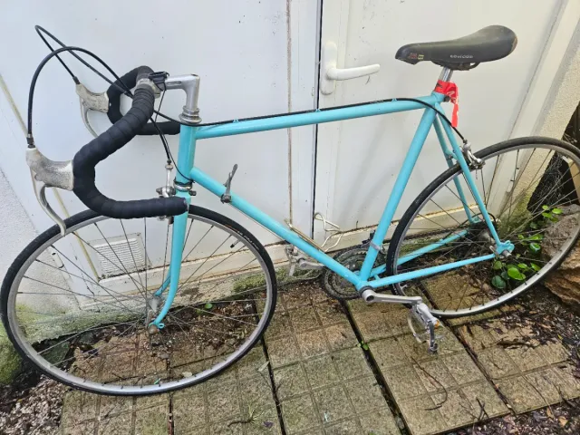 Bicicleta de carretera de color azul, ideal para paseos y entrenamientos. - Cuadro de bicicleta de carretera NUEVO recién pintado. - Sillín Concord. - Manillar curvo.