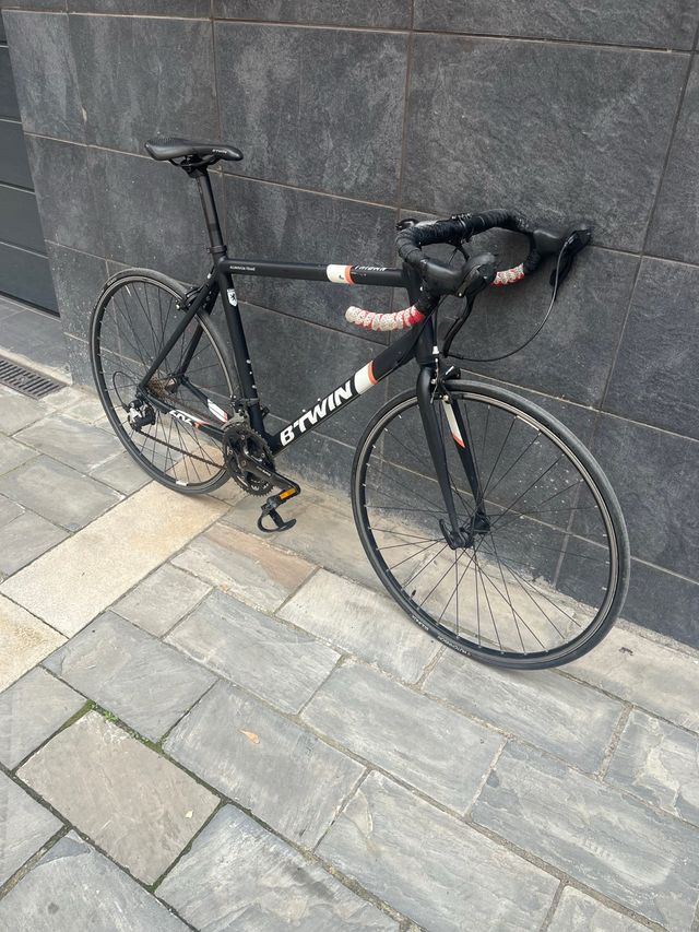 Detalles del productoBicicleta de carretera Btwin en color negro.