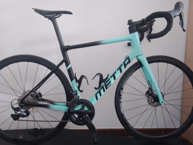 Montada en Shimano ultegra 50/34 - 11/30. Ruedas de carbono marca FFD. Perfil 30. Bujes rueda DT Swiss 350. Pedales Shimano.