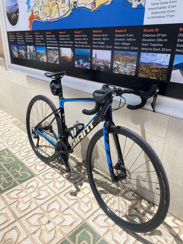 Bicicleta de carretera Giant TCR talla L en color negro y azul. - Cuadro de carbono. - Frenos de disco. - Cambio Shimano Ultegra. 11 v No envios