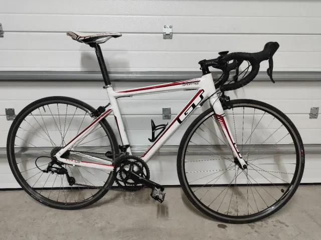 Bicicleta de carretera GT Sportive en color blanco con detalles en rojo. Muy bonita en buen estado, cambios shimano. Ideal para empezar en el ciclismo Talla S