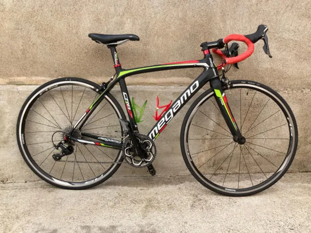 Detalles del productoBicicleta de carretera Megamo CR8 en color negro con detalles en verde y rojo. Talla 50.