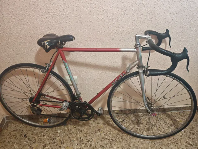 Detalles del productoBicicleta de carretera clásica con cuadro rojo y detalles plateados. Ideal para paseos y entrenamientos.
