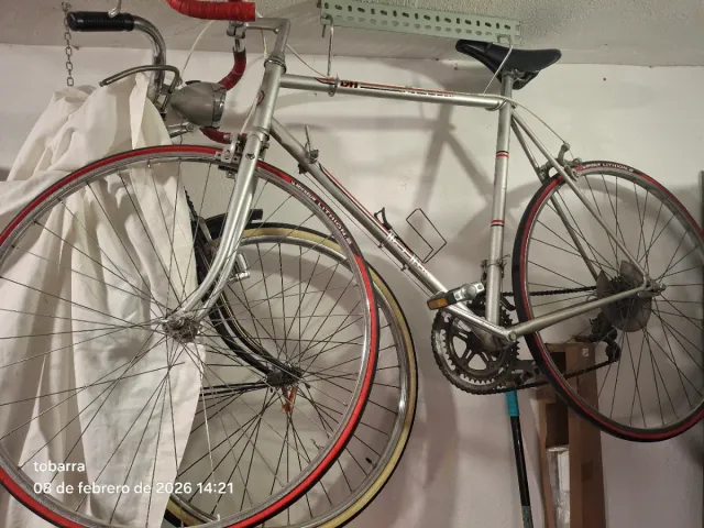 Bicicleta de carretera BH - Cuadro de color plateado. - Ruedas con detalles en rojo. - Manillar curvo.
