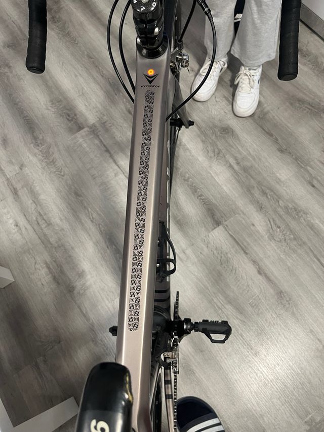 Detalles del productoBicicleta de carretera con un diseño elegante y detalles únicos.