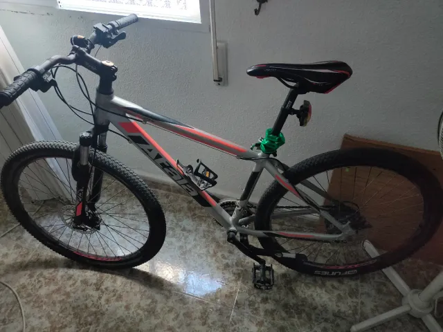 Bicicleta de montaña con un diseño moderno y deportivo. - Cuadro de aluminio ligero. - Suspensión delantera. - Frenos de disco. - Ruedas de 29 pulgadas.
