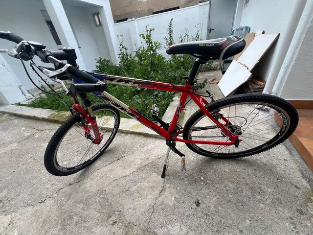 Detalles del productoBicicleta de montaña BH en color rojo, ideal para disfrutar de rutas y caminos.