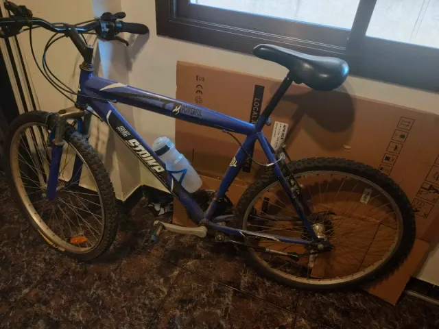 Detalles del productoBicicleta de montaña de color azul con detalles en blanco y negro. Ideal para paseos y rutas.