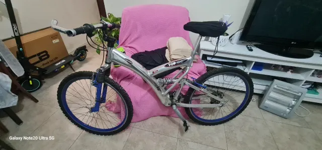 Detalles del productoBicicleta de montaña con doble suspensión, ideal para terrenos irregulares. Su diseño robusto y llamativo la hace destacar.