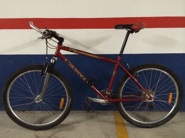 Bicicleta marca Kona modelo Fire Mountain, horquilla RST 381, frenos de zapata en buen estado, 3 platos, 8 piñones, cambio shimano, pedales con cala pies. Cubiertas nuevas. Talla L.