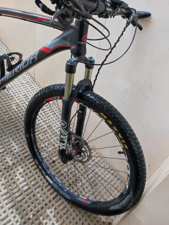 Bicicleta de montaña Merida con cuadro de carbono. Talla L - Cuadro de carbono. - Horquilla Fox. - Ruedas Maxxis.
