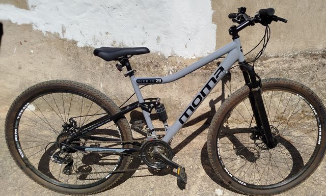 Detalles del productoBicicleta de montaña Moma 29 pulgadas, 15kg aprox con doble suspensión. Está en buen estado.