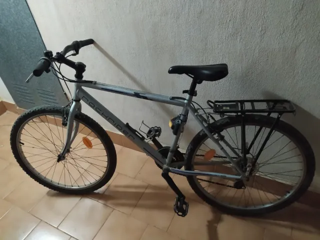 Detalles del productoBicicleta de montaña Rockrider en color gris, ideal para tus aventuras.