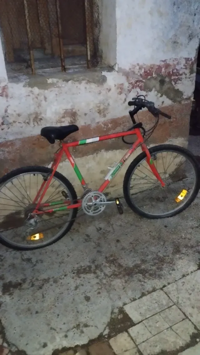 Bicicleta de montaña con un diseño llamativo en color rojo. - Cuadro de metal. - Ruedas de 26 pulgadas. - Manillar deportivo.