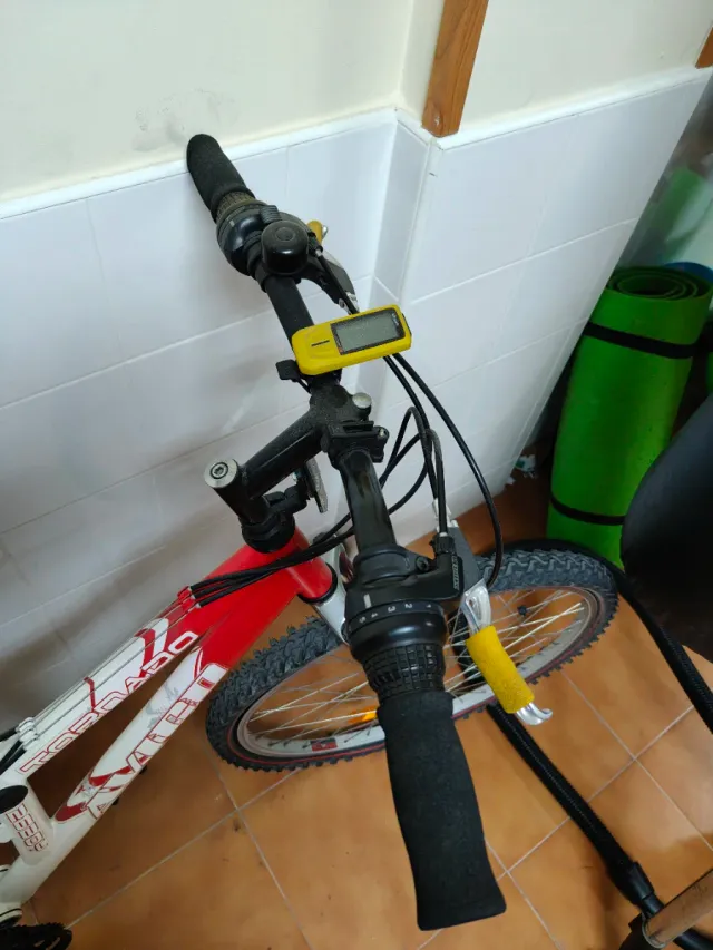 Bicicleta de montaña roja y blanca Con cuenta km