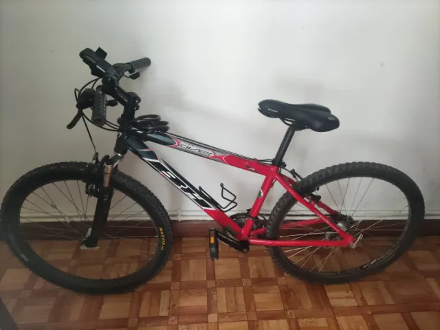 Detalles del productoBicicleta de montaña con un diseño deportivo en colores rojo y negro. Ideal para paseos y aventuras.