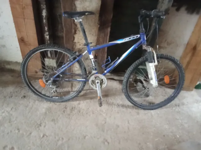 Bicicleta de montaña en color azul y blanco. - Cuadro de aluminio. - Suspensión delantera. - Frenos de disco. - Ruedas de 26 pulgadas.