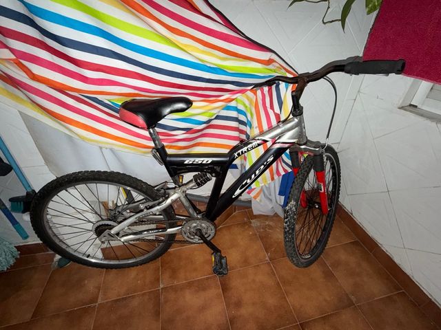 Detalles del productoBicicleta de montaña con suspensión delantera y trasera.