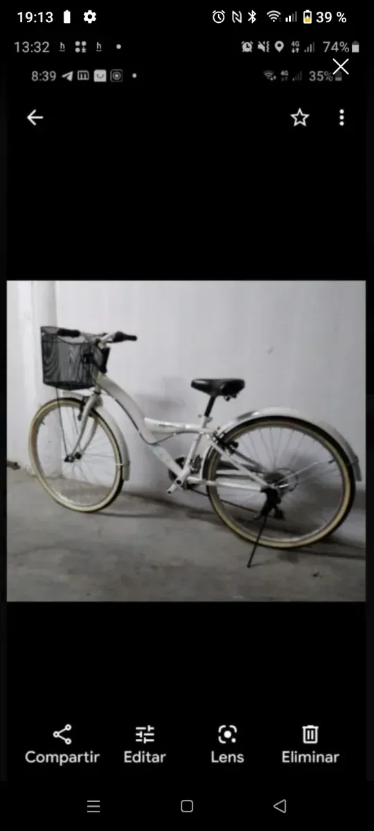 Bicicleta de paseo en color blanco, ideal para desplazamientos urbanos. - Cesta delantera de malla. - Guardabarros en ambas ruedas. - Pata de cabra para apoyo.