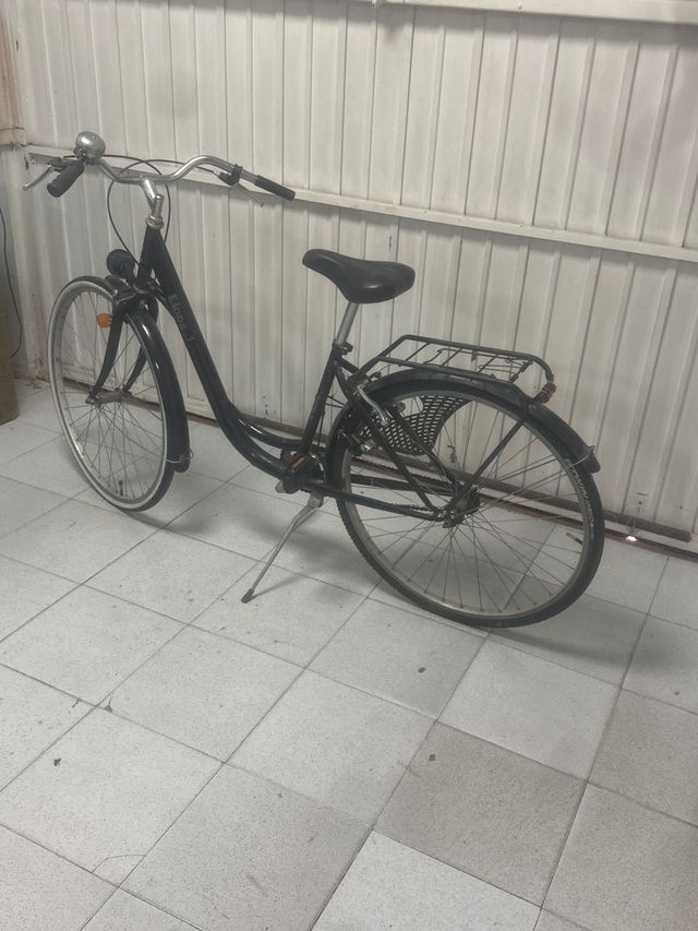 Detalles del productoBicicleta de paseo en color negro, ideal para desplazamientos urbanos.