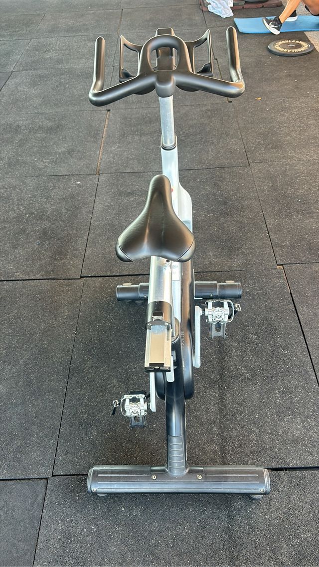 Bicicleta de spinning para entrenamientos en casa. - Manillar ajustable. - Sillín cómodo. - Pedales con agarre.