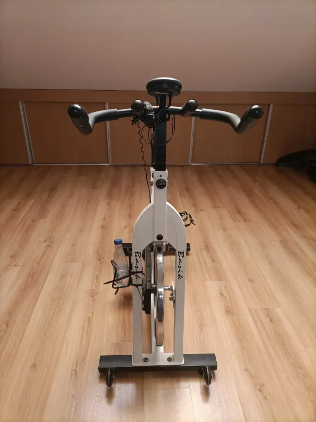 Detalles del productoBicicleta de spinning en color blanco, ideal para entrenamientos en casa. Diseñada para ofrecer una experiencia de ciclismo indoor.