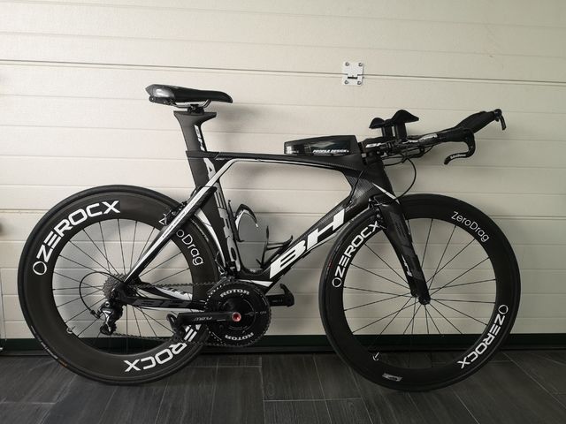 Detalles del productoBicicleta de triatlon bh aerolight talla MD en buen estado, ruedas tubulares de carbono con perfil 50, 90, bielas rotor, manillar deda, frenos vision, desviador y cambio trasero shimano ultegra, también un porta bote que lleva detrás del sillín.