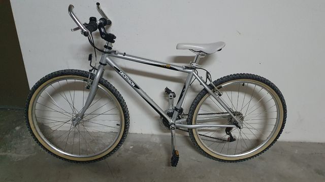 Bicicleta de montaña en color plateado. Ideal para paseos y rutas. - Cuadro de aluminio. - Ruedas de 26 pulgadas. - Frenos V-brake. - Sillín blanco. - Manillar curvo.
