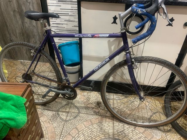 Bicicleta de carretera Decathlon Riverside 300. La bici se ve que esta usada y tiene cosas que hay que arreglar.
