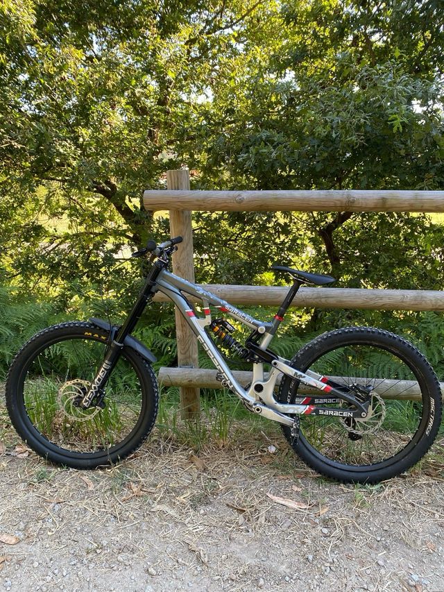 Detalles del productoBicicleta de descenso Saracen con cuadro de aluminio y subchasis de carbono, amortiguador cane creek nuevo y horquillas boxxer, la bici está muy cuidada sin arañazos en horquilla, se vende por no usar. TALLA L. Cualquier duda preguntad