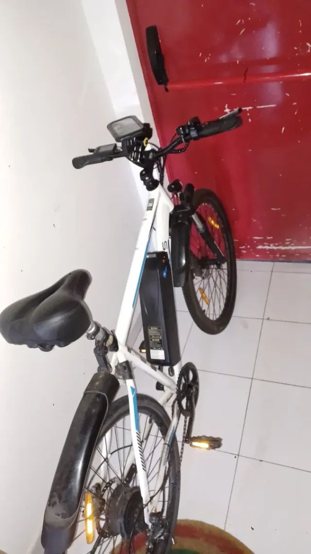 Detalles del productoBicicleta eléctrica de color blanco, ideal para desplazamientos urbanos o paseos.