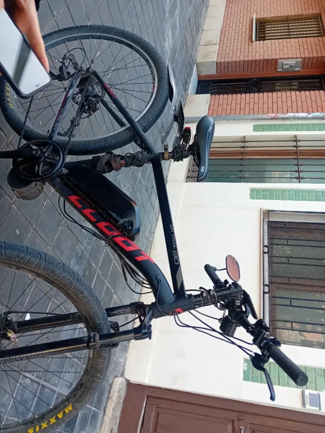 Detalles del productoBicicleta eléctrica CLOOT XR TRAIL 90 en color negro y detalles rojos.
