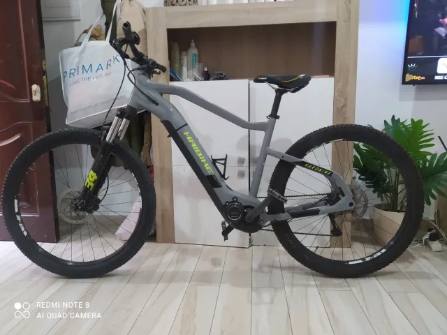 Bicicleta eléctrica Haibike Hardnine en color gris. - Cuadro de aluminio. - Ruedas de 29 pulgadas. - Frenos de disco. - Motor Yamaha.