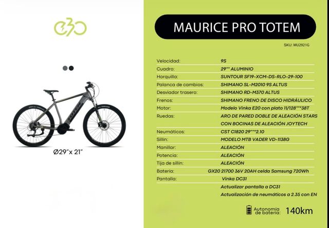 Bicicleta Eléctrica Maurice Pro Totem 29