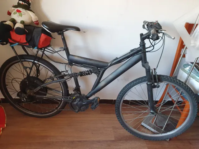 Detalles del productoBicicleta eléctrica de montaña con suspensión delantera y trasera. Ideal para paseos y desplazamientos.